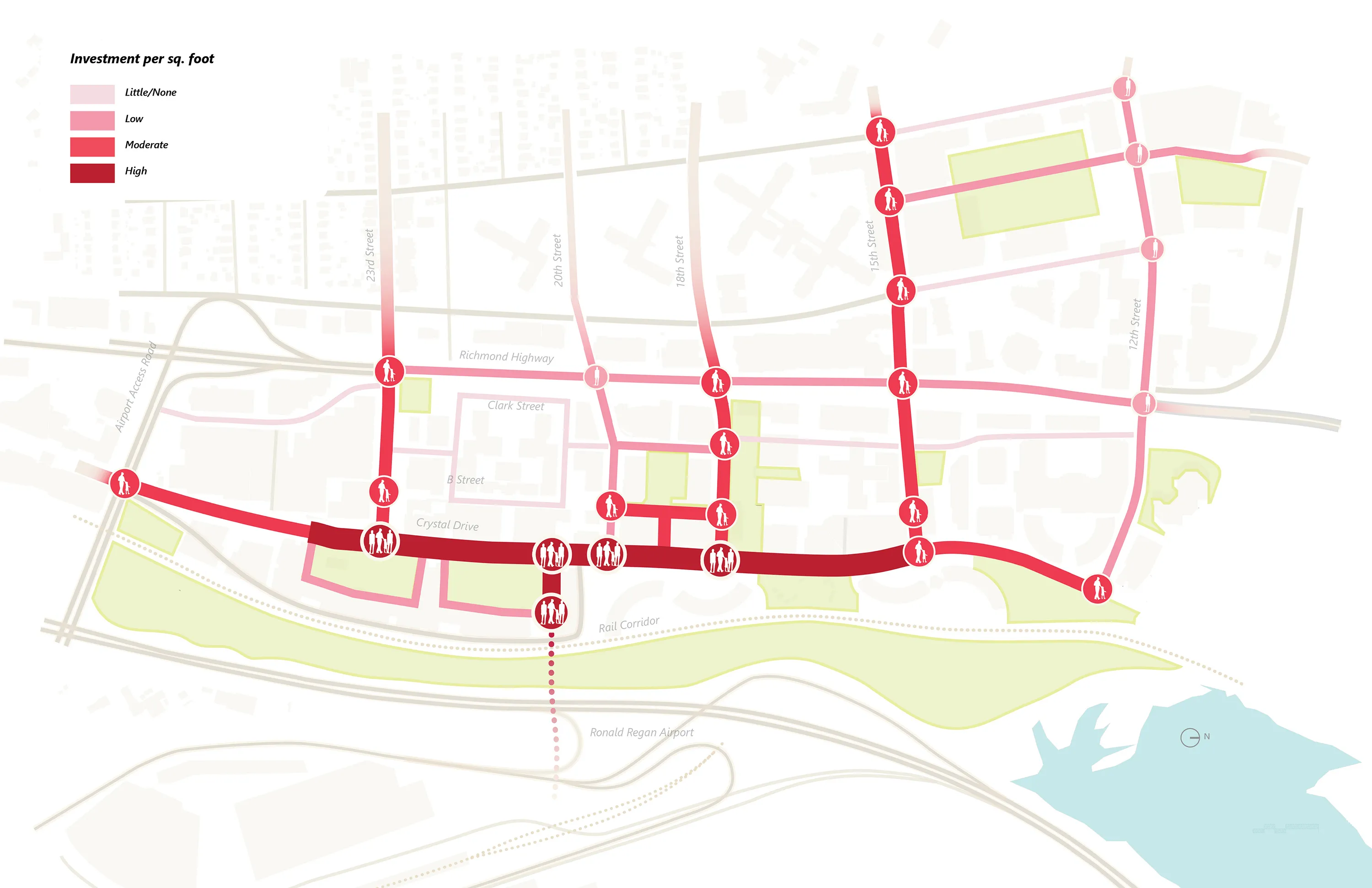 As the development continues to take shape in anticipation of redevelopment, Hoerr Schaudt has provided guidance through the crafting of a comprehensive master plan for four miles of streetscape and fourteen park spaces within the area. The primary goal of these studies is to help drive the transformation of the community through improvements to the public realm, breathing new life into the district by providing a refreshed vision for its streets, plazas, and parks. By harnessing the power of horticulture to provide scale and working with community stakeholders to develop a menu and distribution plan for key program elements, we hope to humanize the public streetscape, turning National Landing into a pedestrian-friendly zone, restoring and rejuvenating the urban tree canopy, improving circulation, and ultimately creating a lush and verdant environment for everyone to enjoy.